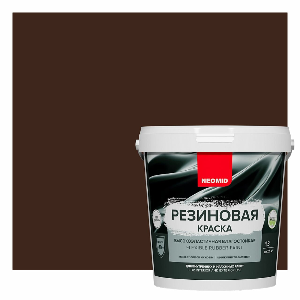Краска резиновая Neomid шелковисто-матовая, готовые цвета, Темный шоколад 1,3 кг
