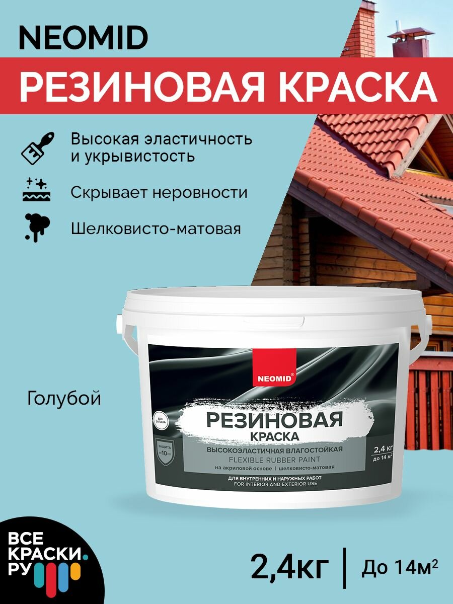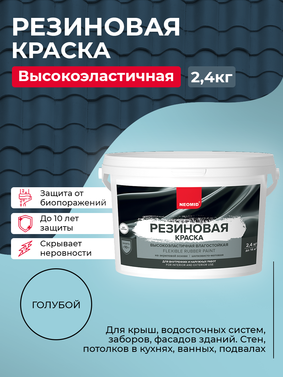 Неомид Краска резиновая Голубой (1,3 кг) / Для фасадов, для стен и потолков в помещениях повышенной влажности