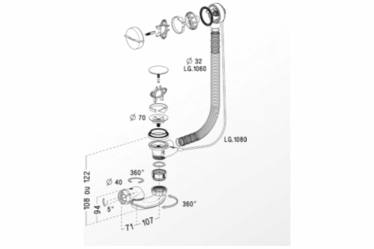 Nicoll Слив-перелив для ванны 1000мм полуавтомат. EB17-0203612 интересное: