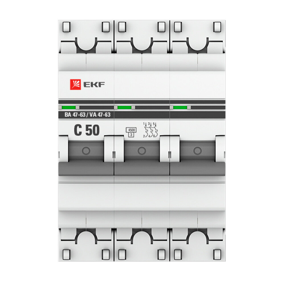 Автоматический выключатель 3P 50А (C) 4,5kA ВА 47-63 EKF PROxima 3 штуки