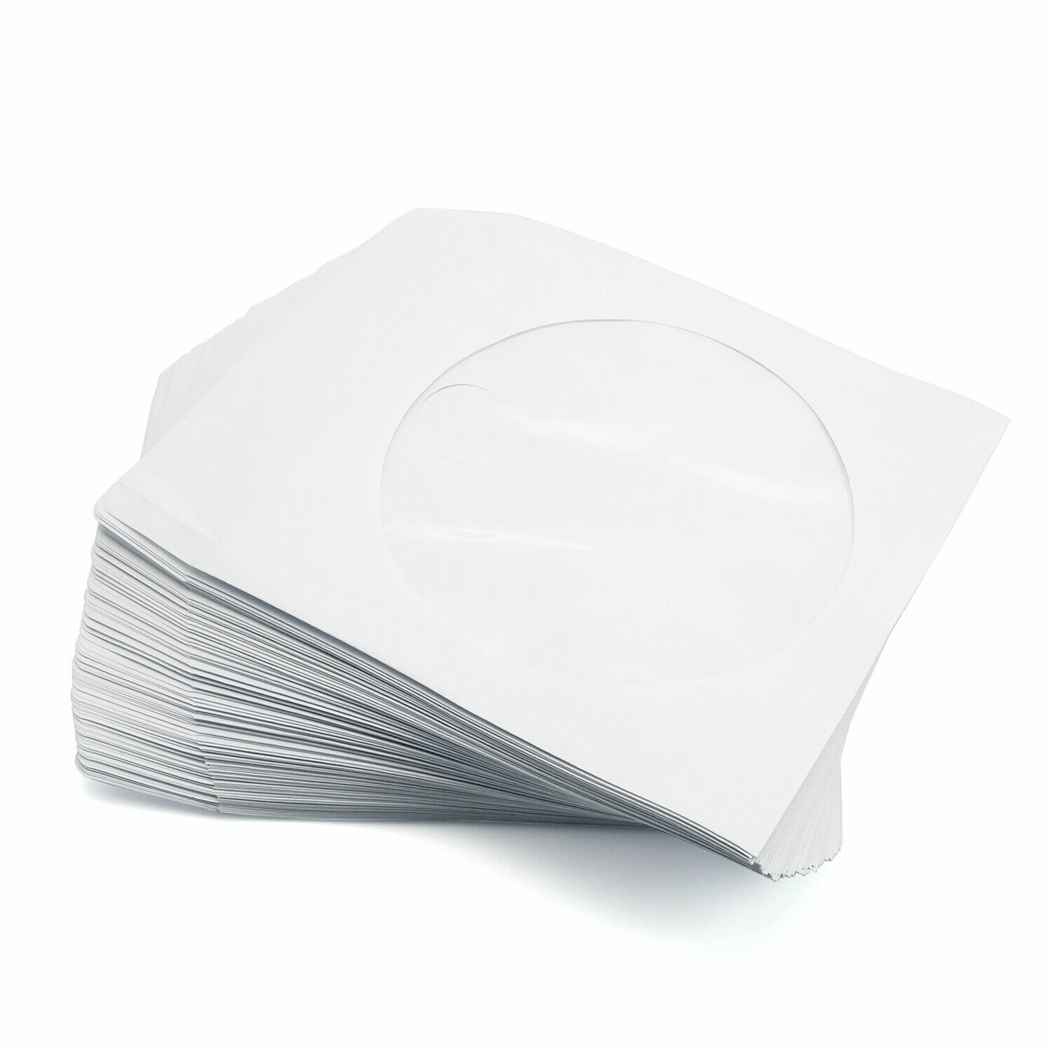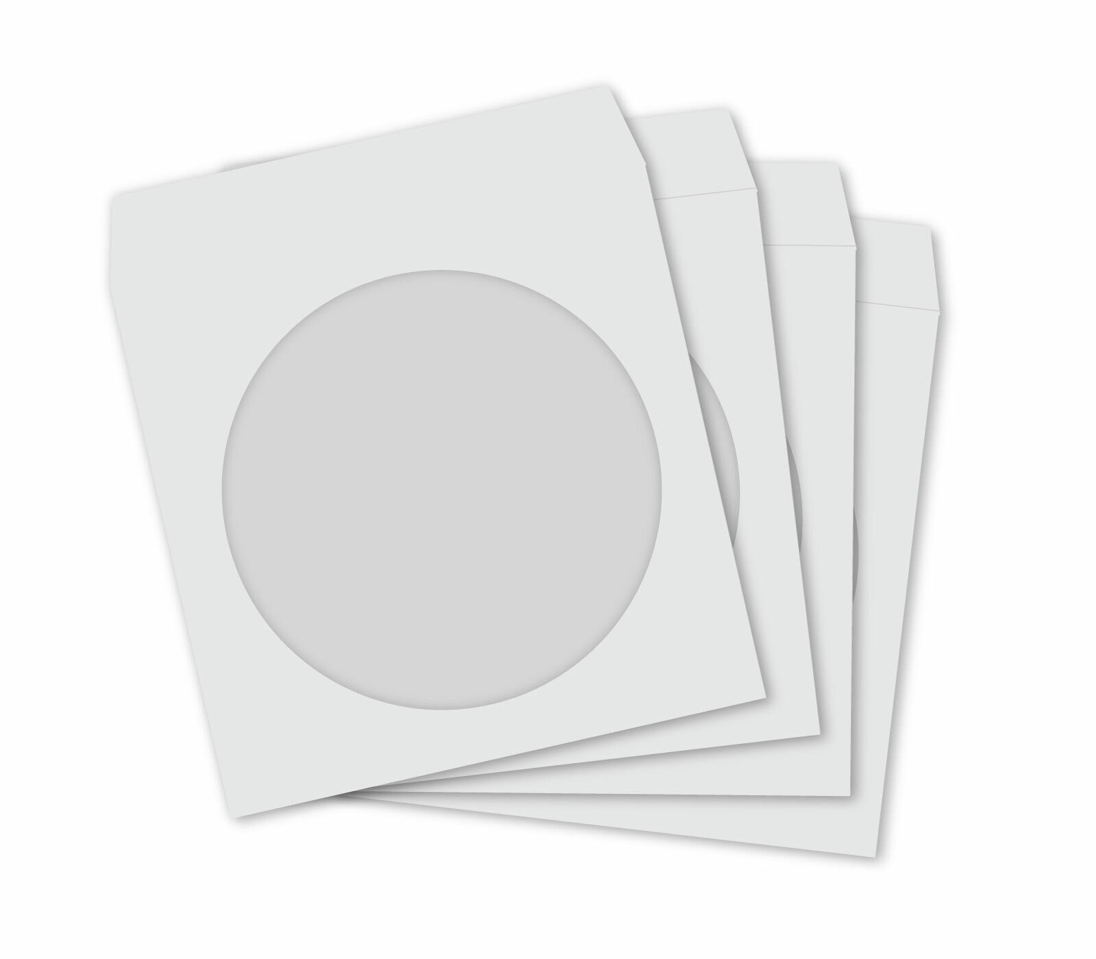 Конверт для CD/DVD бумажный с окном, с вырубным язычком, белый (100шт.)