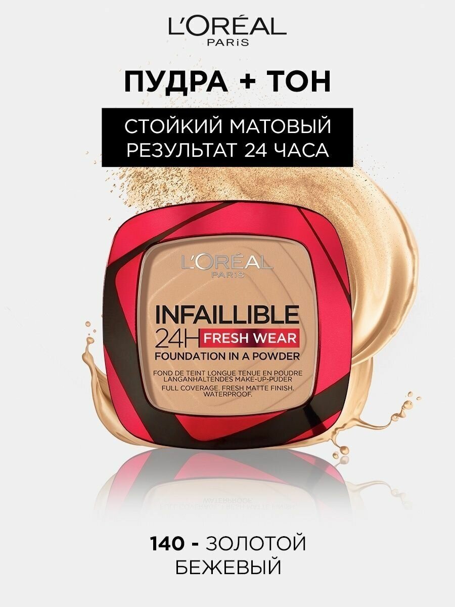 L'Oreal Paris Infaillible Fresh Wear Пудра 24ч, №140 golden beige