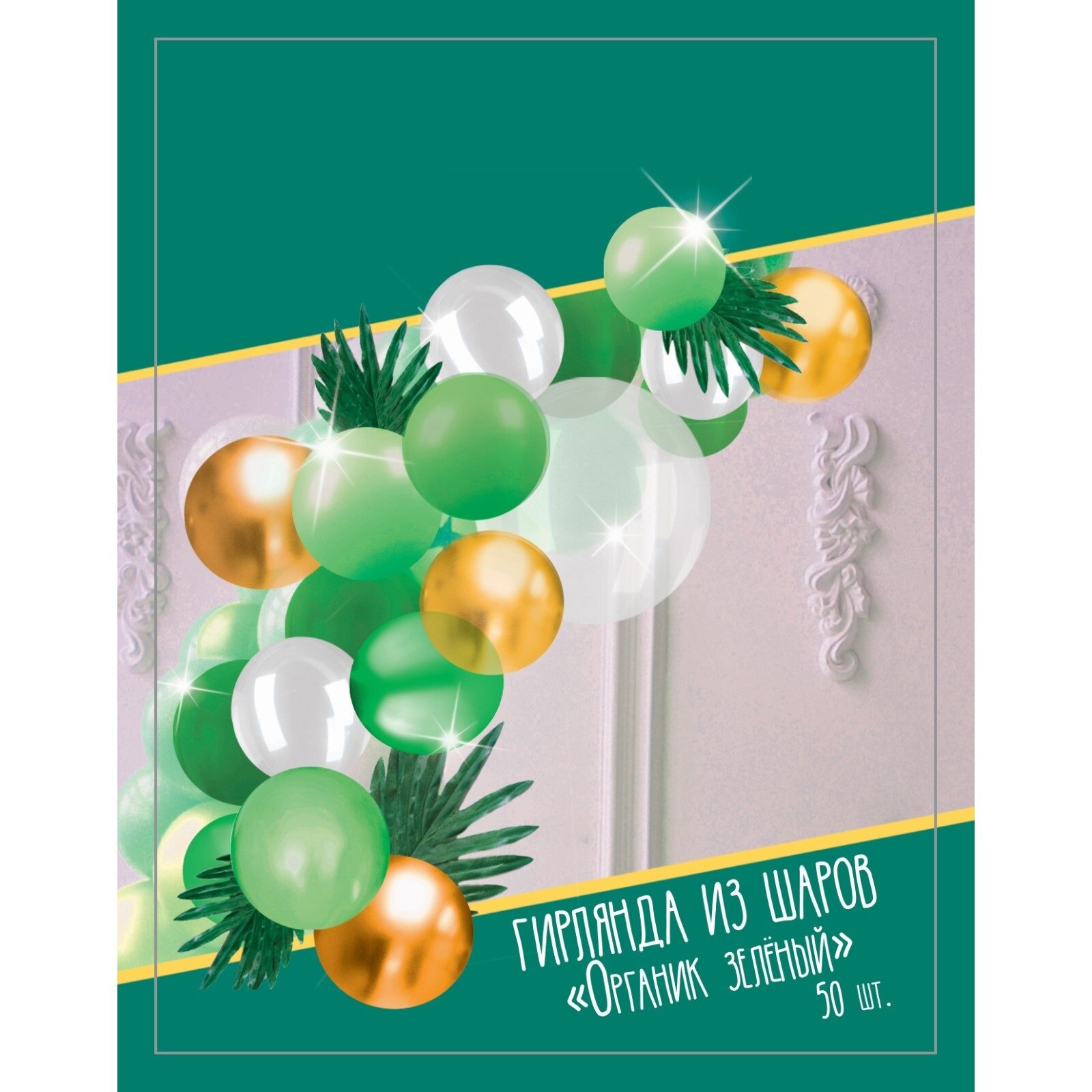 Гирлянда из воздушных шаров Страна Карнавалия "Органик зеленый", длина 2 м, с листьями