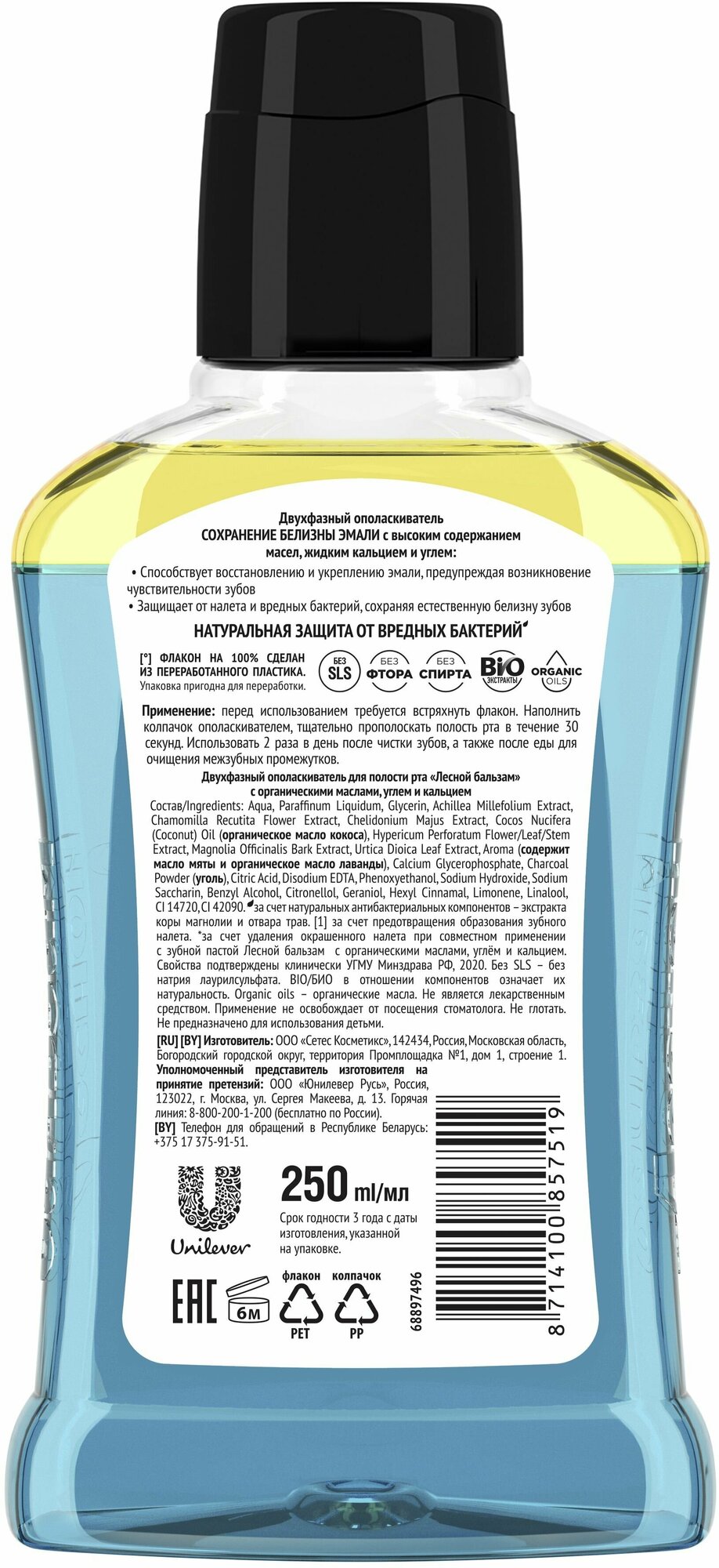 Лесной бальзам, ополаскиватель для полости рта двухфазный (с органическими маслами, углем и кальцием), 250 мл