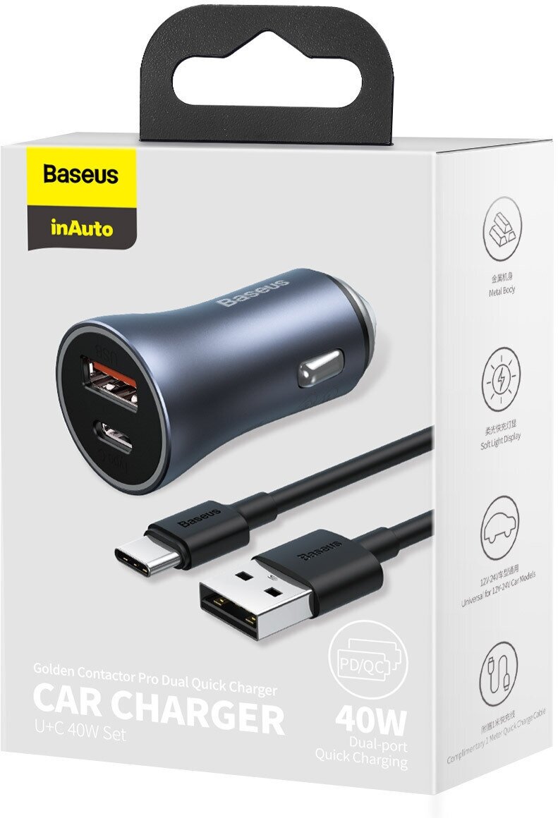Автомобильная зарядка Baseus Golden Contactor Pro Dual Quick Charger Car Charger U+U 40W (CCJD-A0G, CCJD-A03) (dark gray)