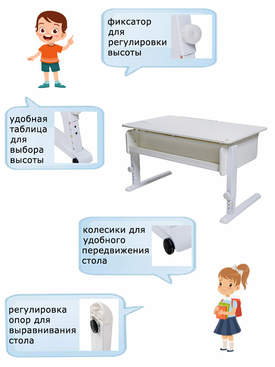 Стол детский Астек-Элара Премиум с ящиком 120x70 см белый/белый/серый