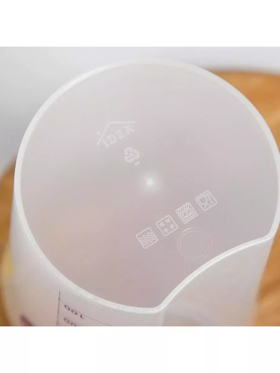 | Плюсы: | Удобная ёмкость, пластик термостойкий, деления видно чётко, ручка не скользит. |