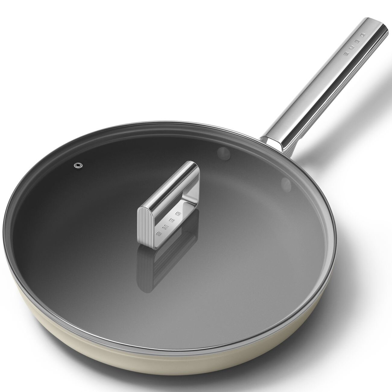 Сковорода с двумя ручками и крышкой SMEG CKFD2811CRM / 28 см / антипригарное покрытие / кремовая