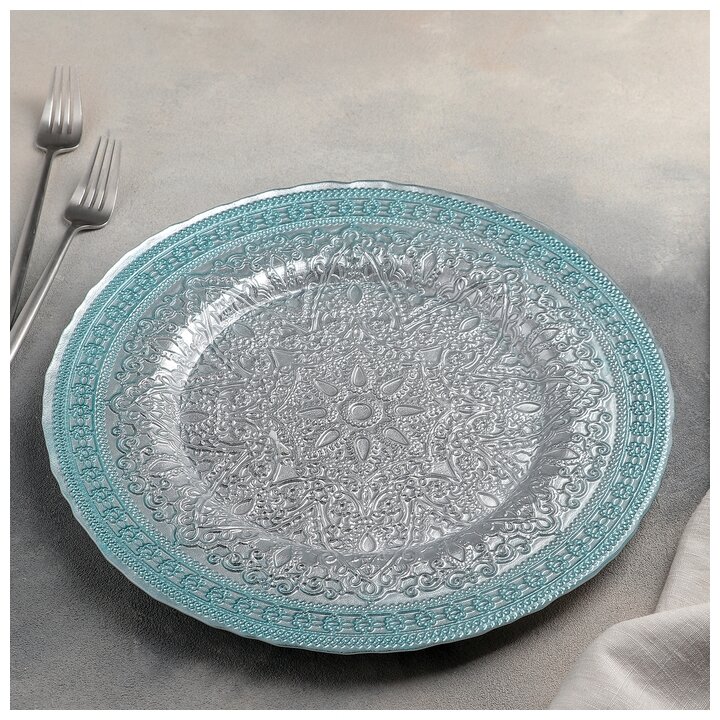 Купить Тарелка стеклянная подстановочная Magistro «Богема», d=33 см, цвет голубой
