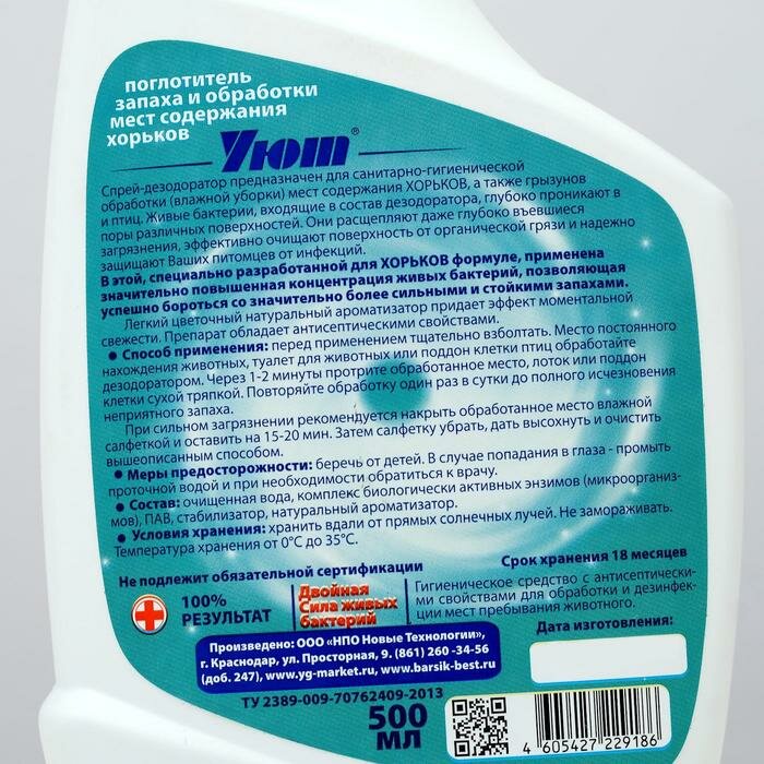 Поглотитель запаха и очиститель для туалетов, клеток для хорьков "Уют" интересное: