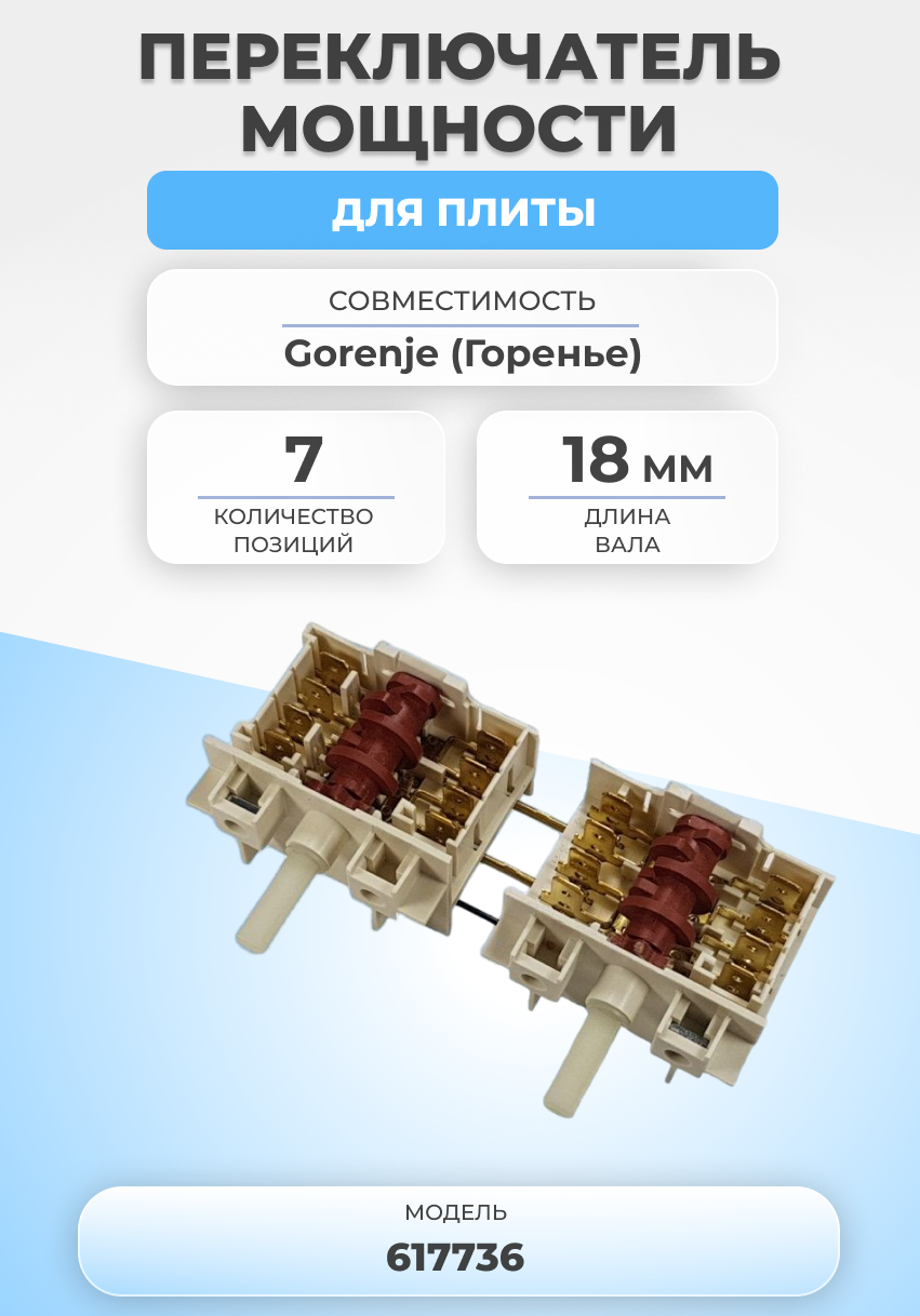 Переключатель режимов конфорок плиты GORENJE (сдвоенный), зам. 617736 COK305GO