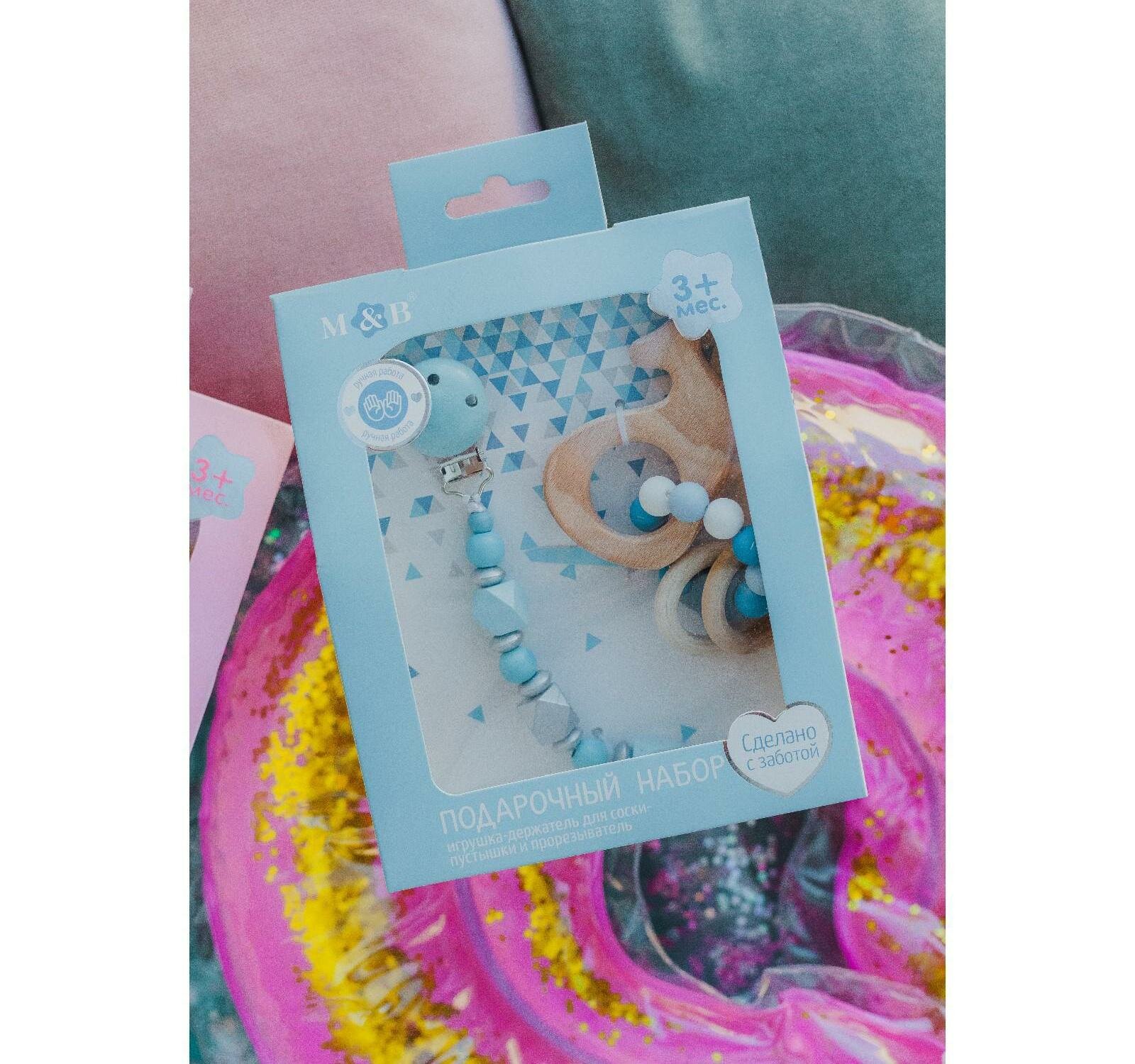Подарочный набор Mum&Baby держатель для соски-пустышки и грызунок-прорезыватель Малыш, голубой