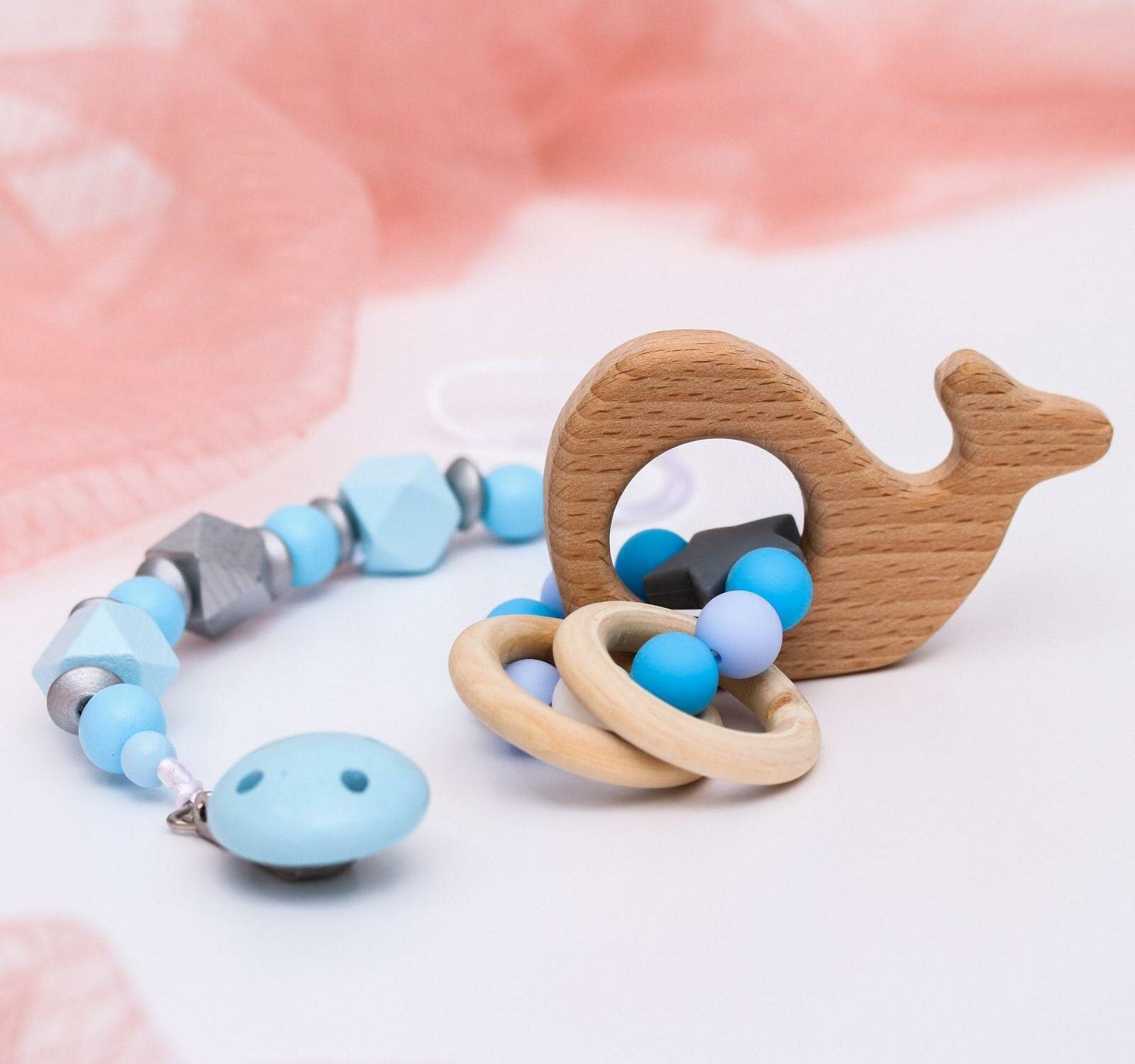 Mum&Baby Подарочный набор: держатель для соски-пустышки и грызунок-прорезыватель «Малыш»