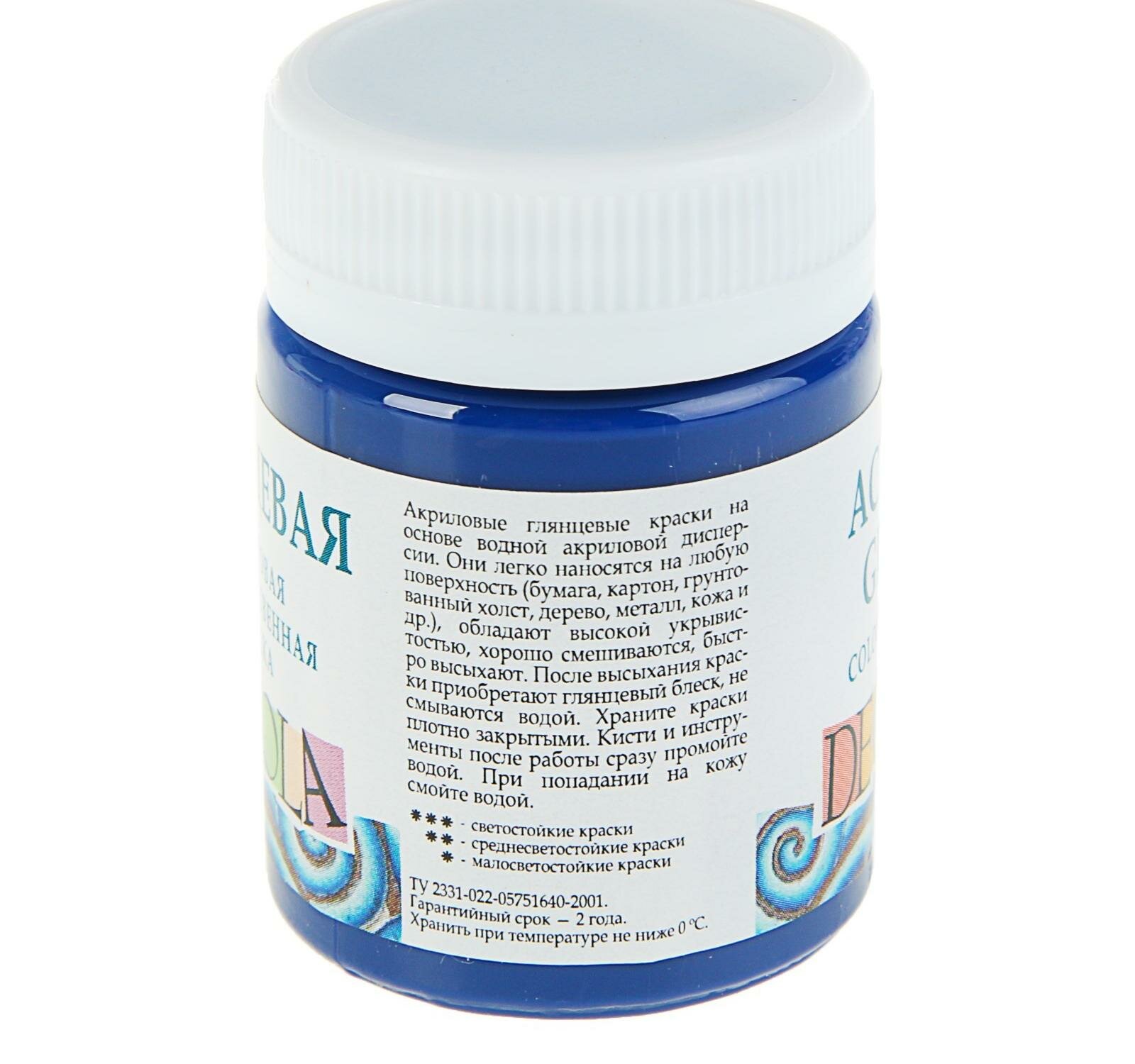 Краска акриловая художественная Decola, 50мл, глянцевая, баночка, синий ( Артикул 282845 )