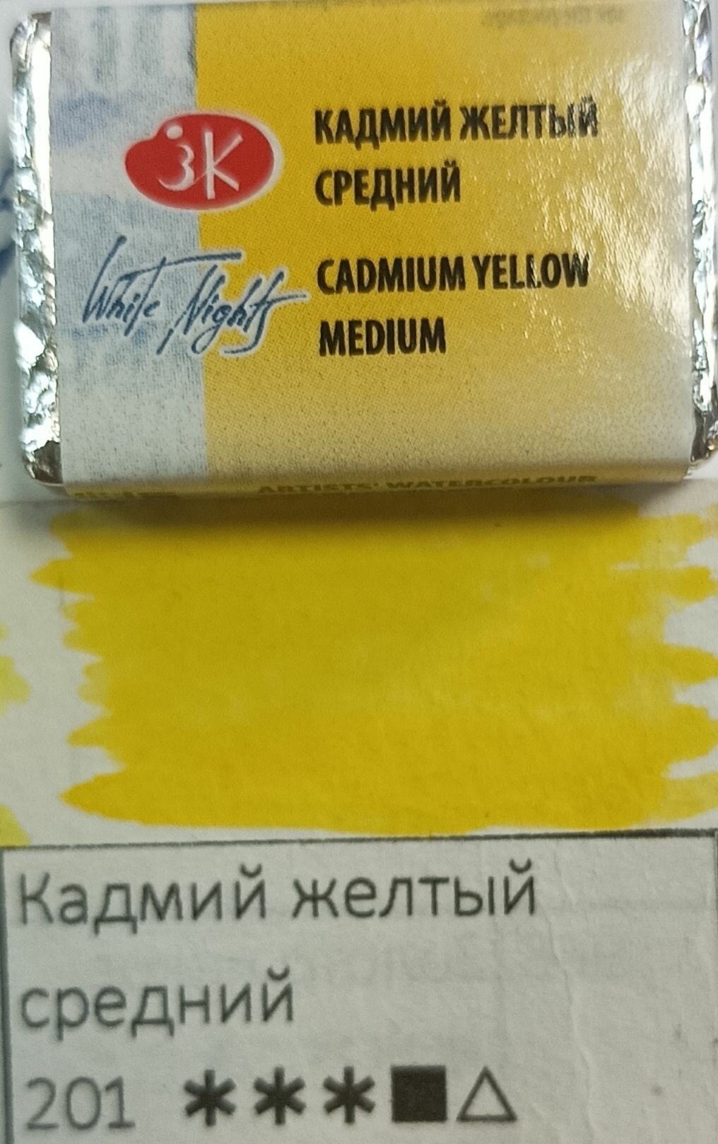 Акварель художественная "Белые ночи", 2.5 мл, кадмий желтый средний, в кювете./В упаковке шт: 1