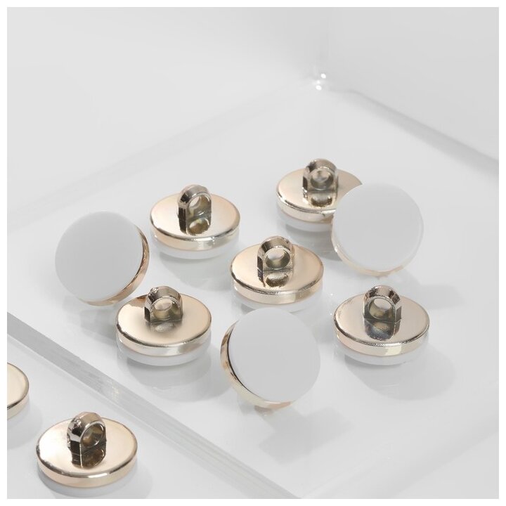 Набор пластиковых пуговиц на ножке, d = 15 мм, 10 шт, матовые, цвет белый/золотой
