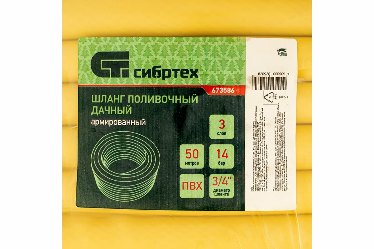 Шланг Поливочный Армированный Дачный, Пвх, 3/4", 50 М// Сибртех Сибртех арт. 673586