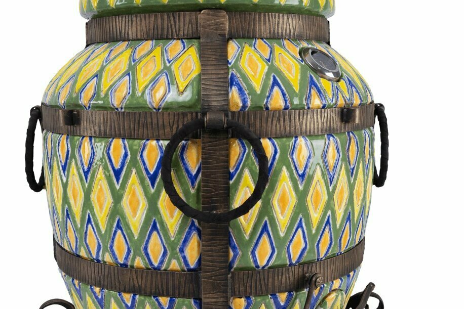 Тандыр Тамерлан со съемной крышкой, на колесах, цвет морская волна / чехол и сборник рецептов в подарок