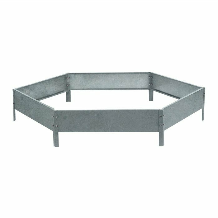 Клумба садовая оцинкованная, одноярусная шестиугольная для дачи, сада и огорода, декоративное ограждение сборное для цветов, диаметр 140 см, высота 15 см, цвет желтый