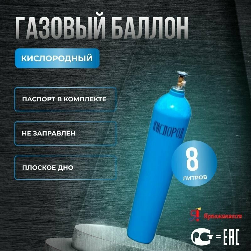 Баллон для газов 8 л W19.2 крашеный, с вентилем ВК-2 (Кислород) Ярпожинвест интересное: