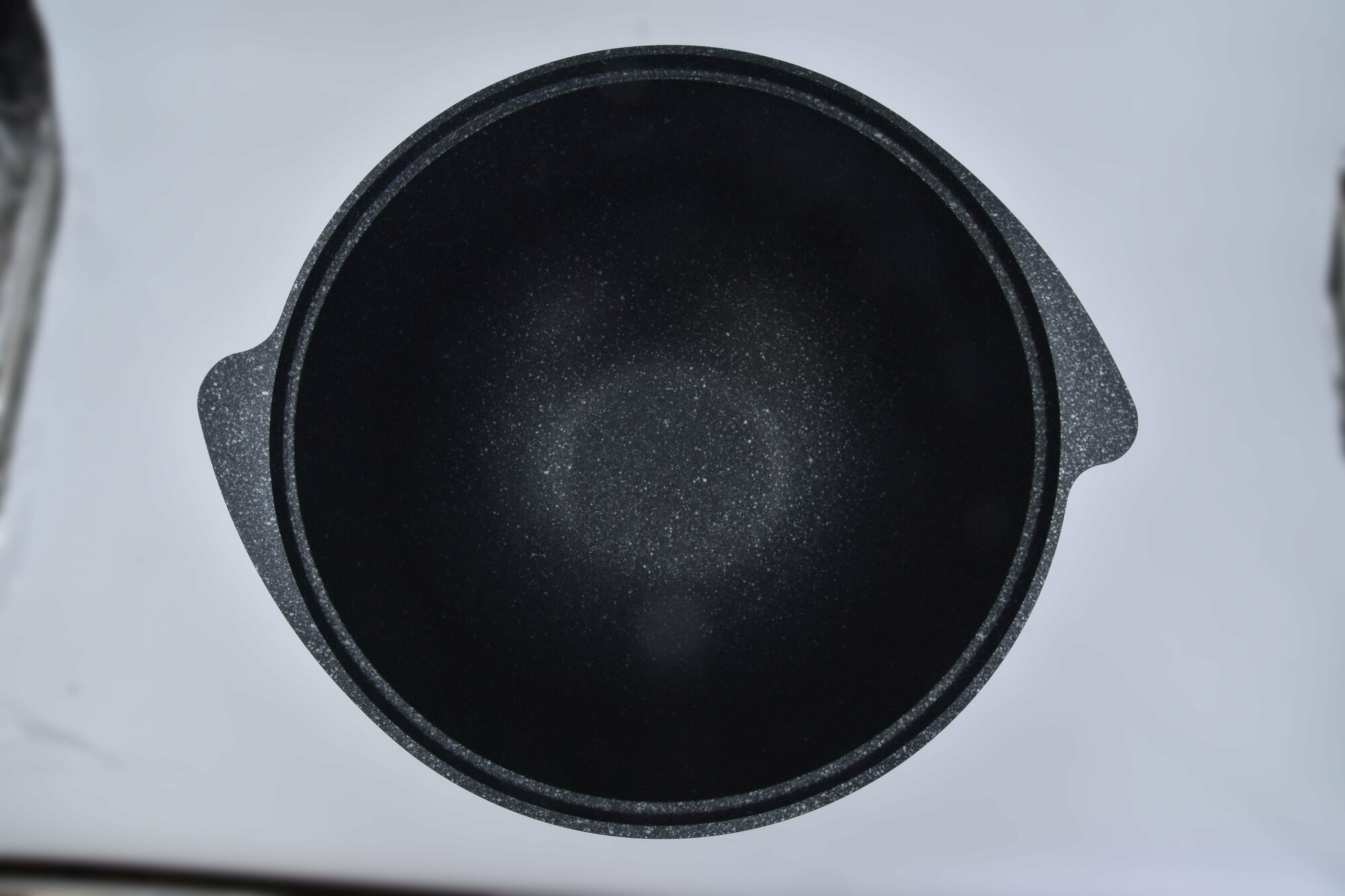 Отличный казан, большой 7 лит., с антироигарным покрытием из натурального камня. Стенки из толстого алюминия. Крышка плотно прилипает к казан. Готовить в нём одно удовольствие. Жена оценила на 5 |
