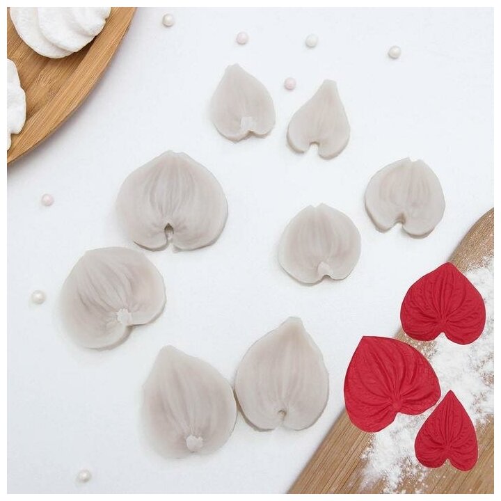 Набор силиконовых молдов «Листья», 4 пары, цвет микс интересное: