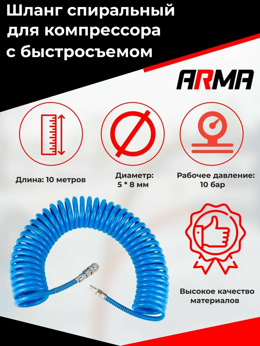 Шланг спиральный синий ARMA с быстросъемными соед. профи 20бар 5*8*10м интересное:
