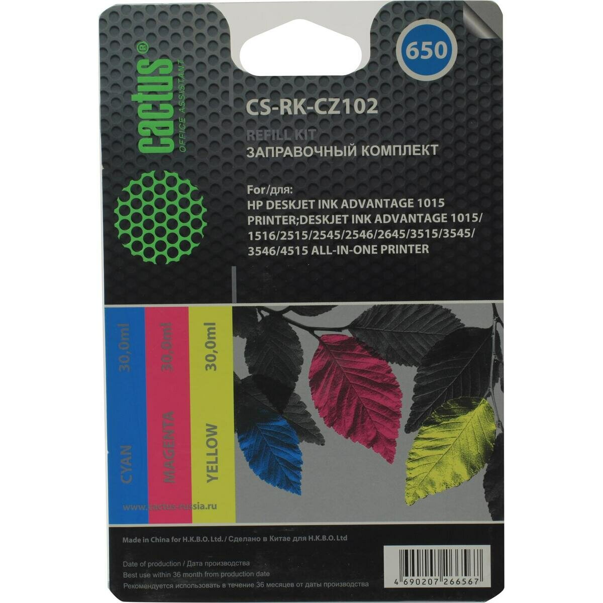Заправочный набор Cactus CS-RK-CZ102 многоцветный для HP DeskJet 2515/3515 (3*30ml)