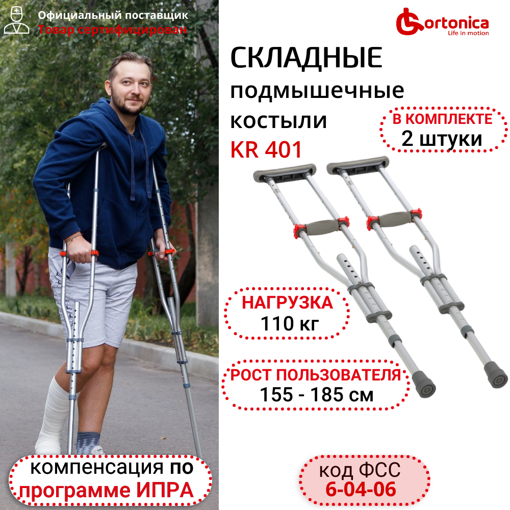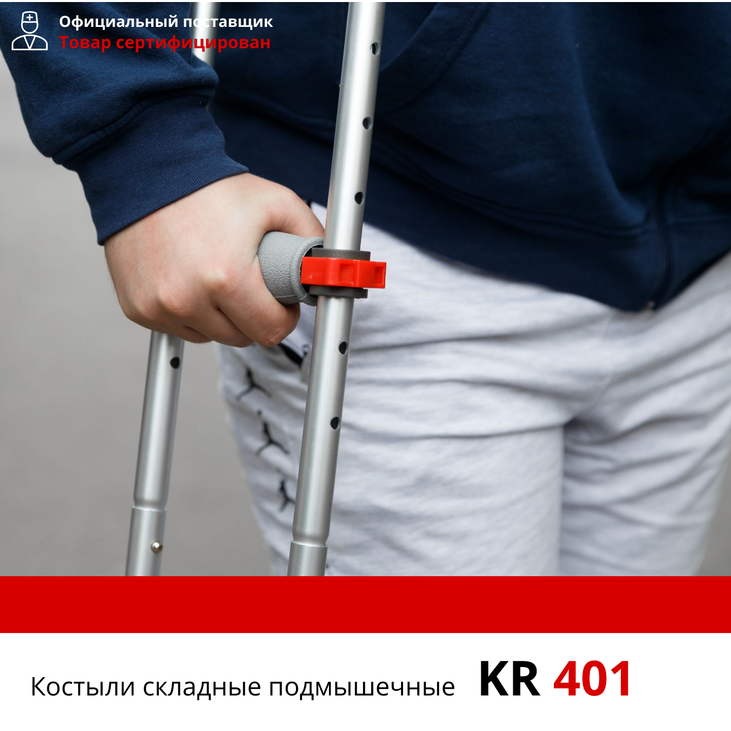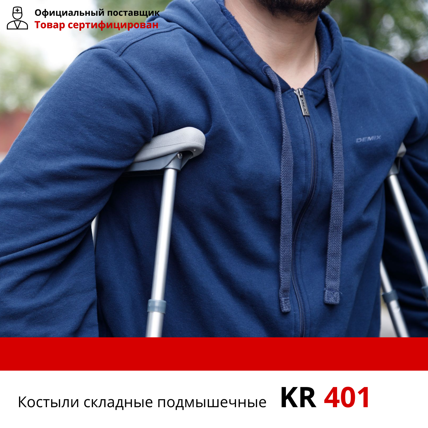 Костыли складные KR 401 подмышечные регулируемые по высоте для взрослых до 110 кг пара