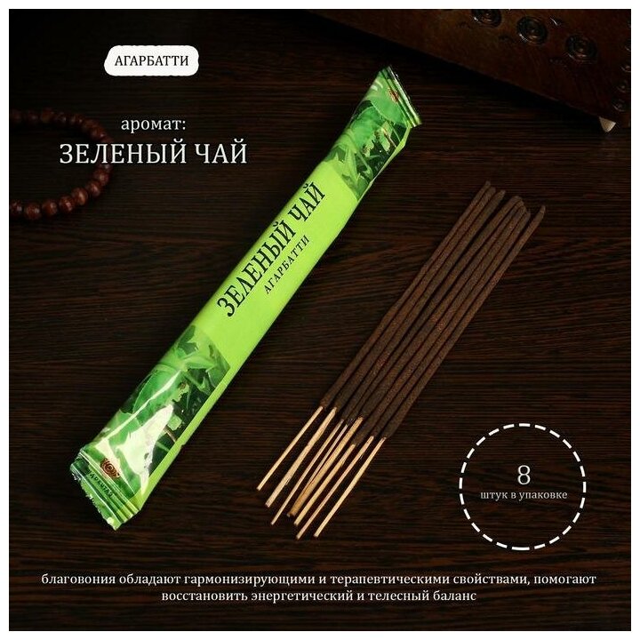 Благовония "Зеленый чай", 8 палочек в мягкой упаковке