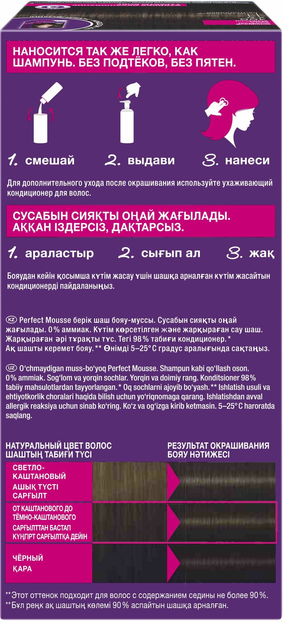 Краска-мусс для волос Perfect Mousse сияющий и стойкий цвет 300 Черный каштан 92.5мл