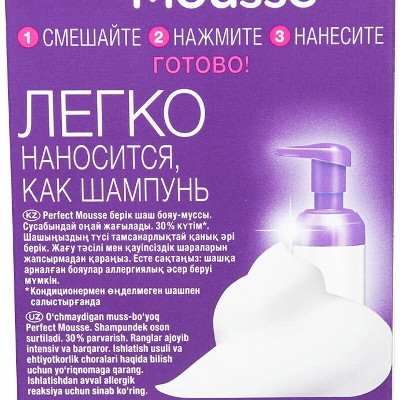 Perfect Mousse стойкая краска перфект мусс для волос, 600, Светлый каштан, 35 мл