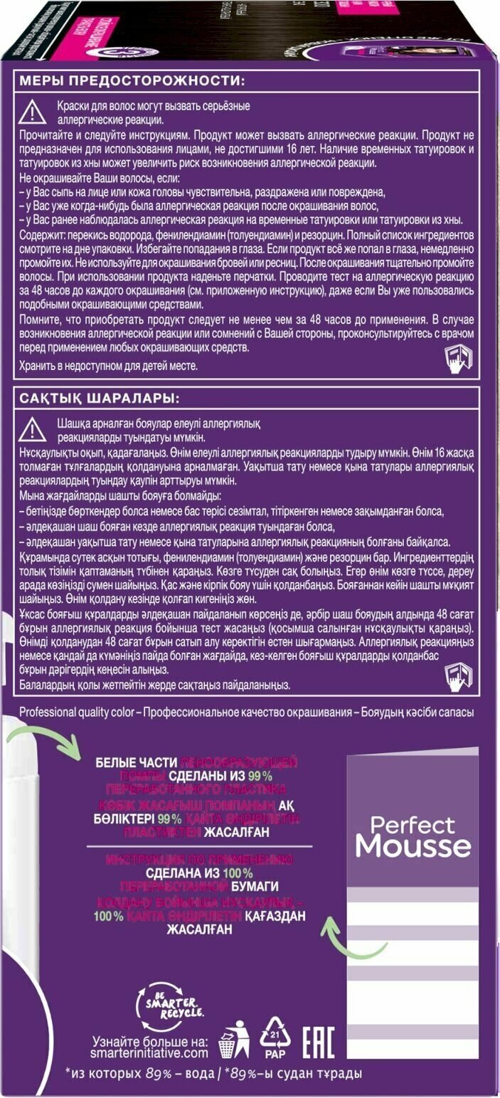 Краска-мусс для волос Perfect Mousse сияющий и стойкий цвет 300 Черный каштан 92.5мл