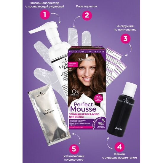 Стойкая краска-мусс для волос без аммиака Perfect Mousse 465 Шоколадный каштан, 92,5 мл