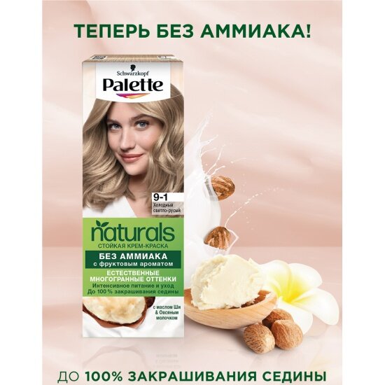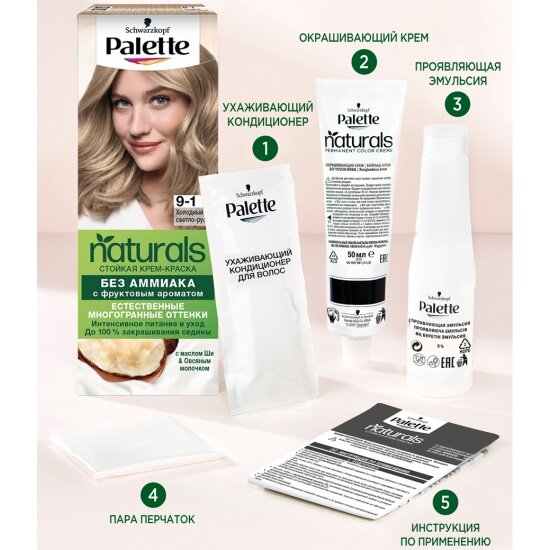 Палетт Naturia Стойкая крем-краска для волос, 9-1 холодный светло-русый, 110 мл - 1 шт