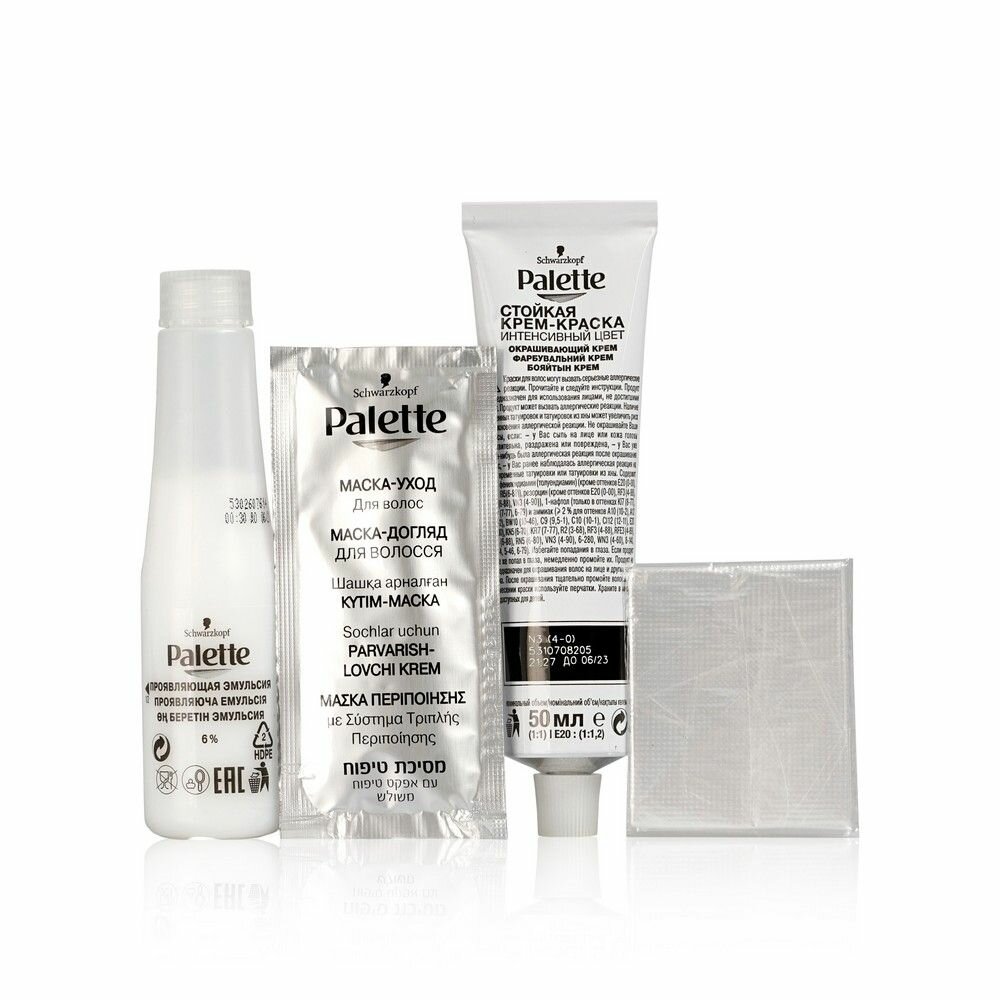 Палетт Стойкая крем-краска Интенсивный цвет, N3 4-0 Каштановый, 110 мл - 3 шт