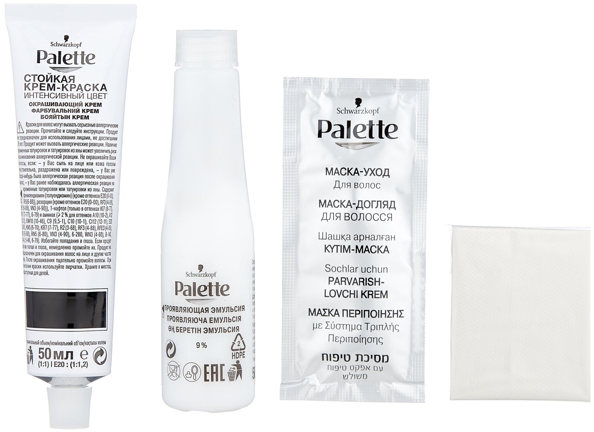 Palette Крем-краска стойкая для волос Интенсивный цвет 1-0 Черный, 110 мл, 3 шт