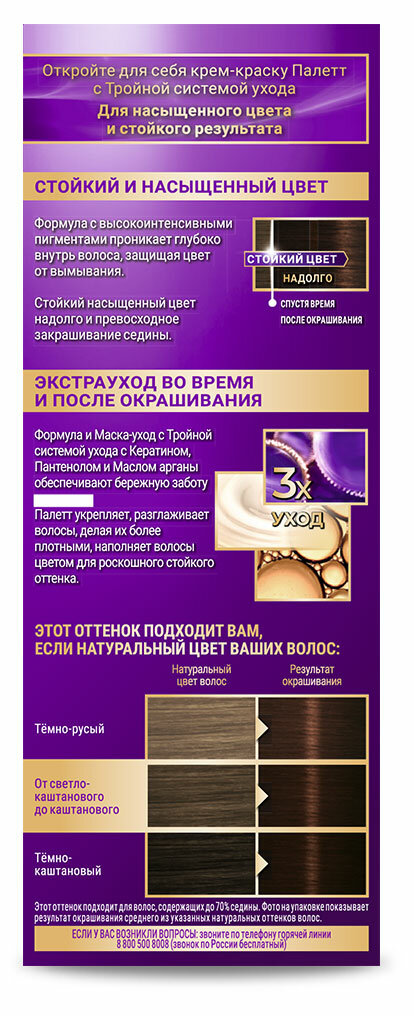 Краска для волос Palette, Палетт, Благородный каштан,100 мл,2 шт
