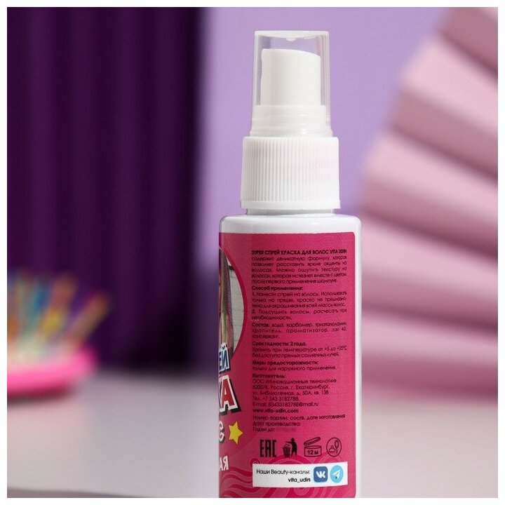 Спрей-краска для волос VITA UDIN, розовая, 50 мл