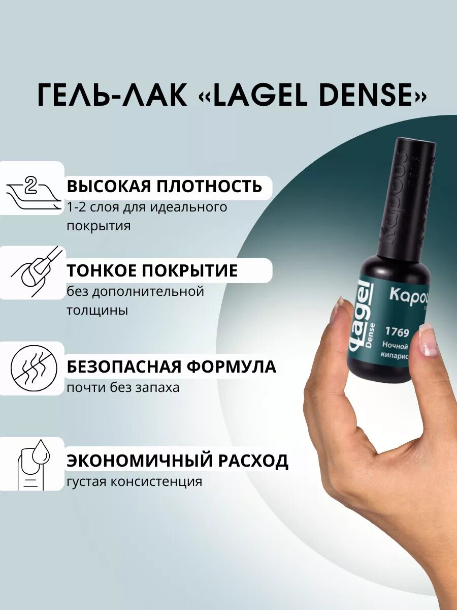 Гель-лак LAGEL DENSE для ногтей KAPOUS PROFESSIONAL 1769 ночной кипарис 8 мл