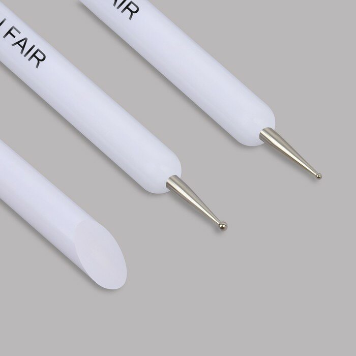 Набор для дизайна ногтей: точечная кисть - дотс 2 шт, точечная кисть - пушер, 15 см, цвет белый