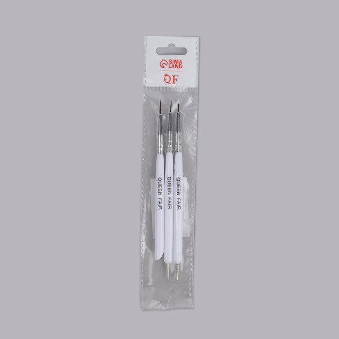Набор кисть-дотс/кисть-пушер тонкий ворс 3шт 15см бел пакет QF