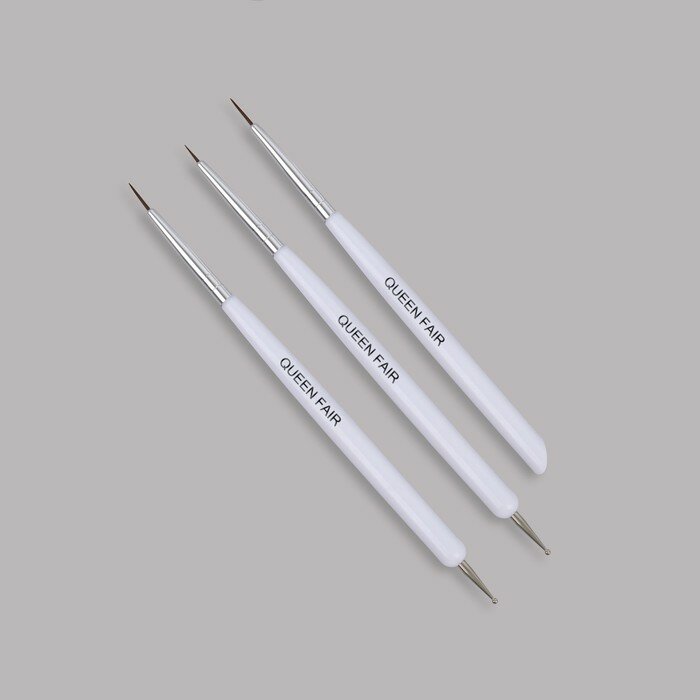 Queen fair Набор для дизайна ногтей: точечная кисть - дотс 2 шт, точечная кисть - пушер, 15 см, цвет белый