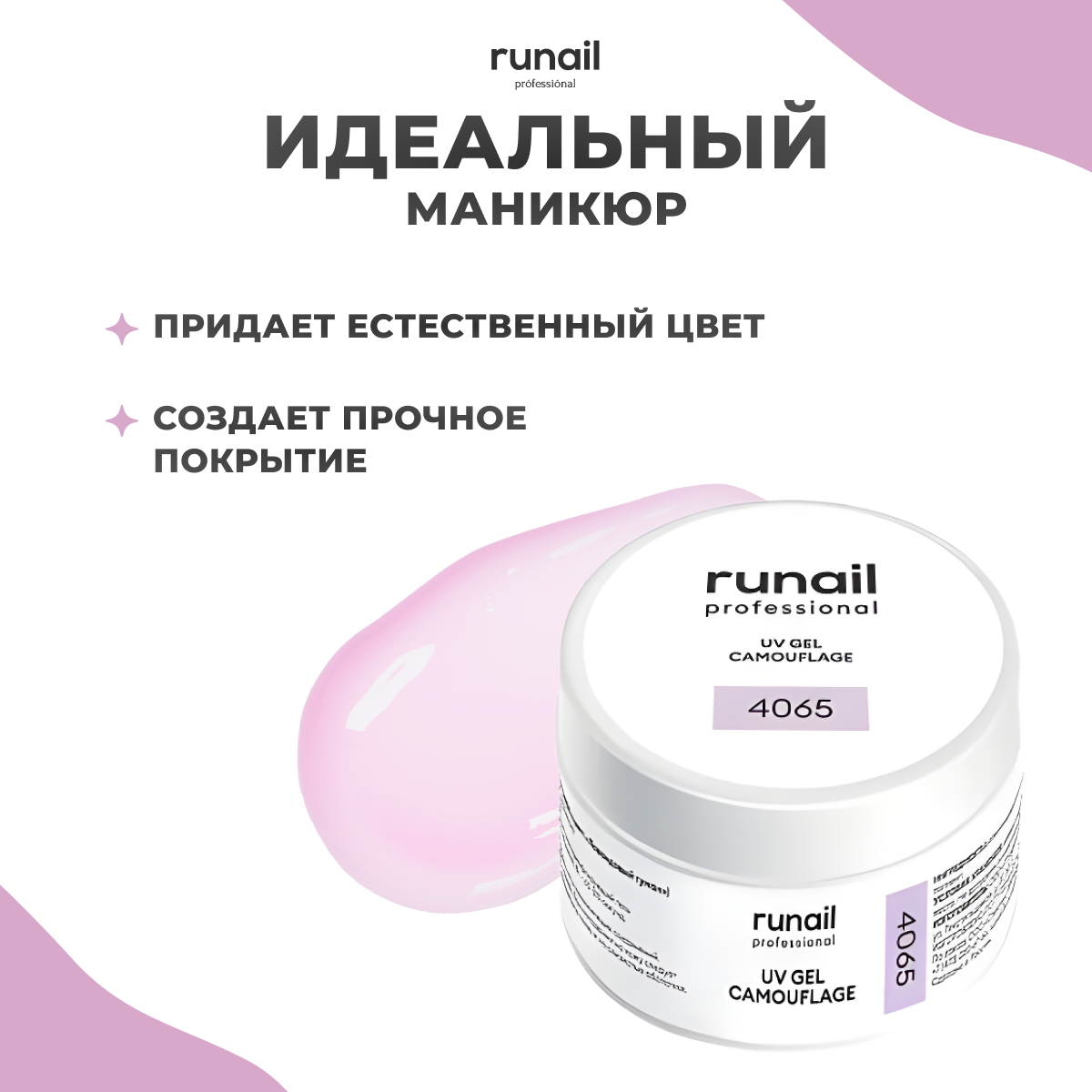 RUNAIL, Камуфлирующий УФ-гель, лавандовый рассвет, 15 г