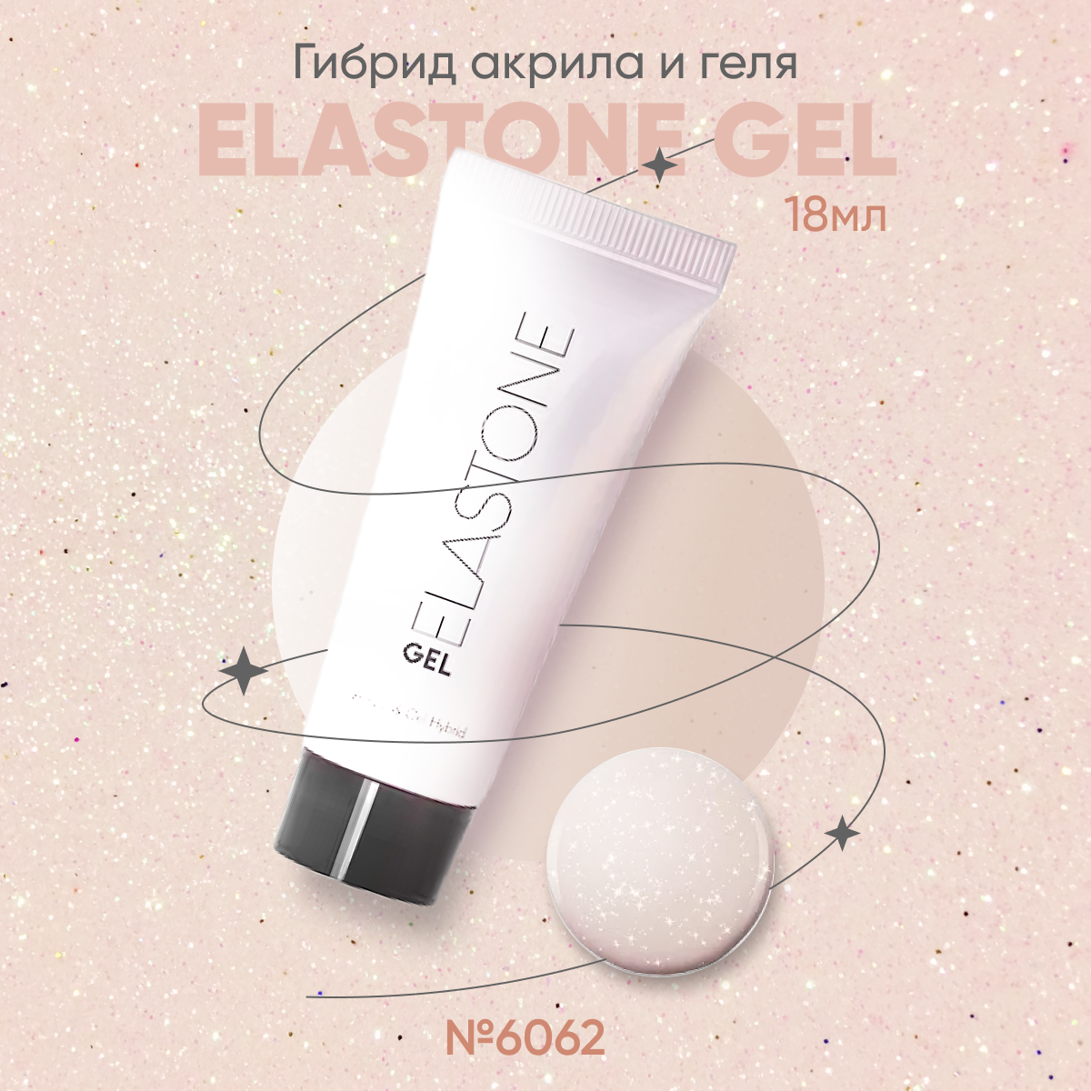 Гибрид акрила и геля/акригель/полигель для наращивания ELASTONE GEL/полигель с эффектами, 18 мл №6062