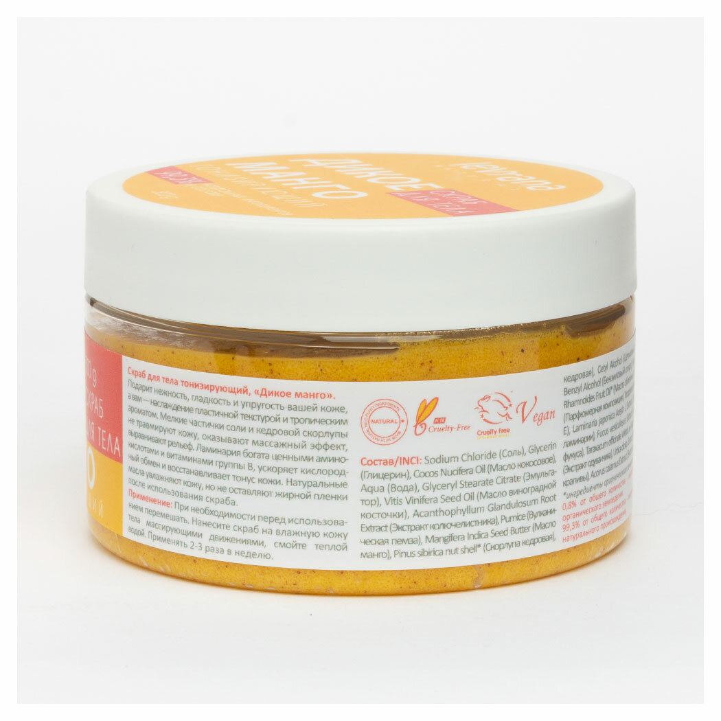 Levrana Скраб для тела тонизирующий, «Дикое манго», Гладкость и упругость кожи с тропическим ароматом, 300 гр