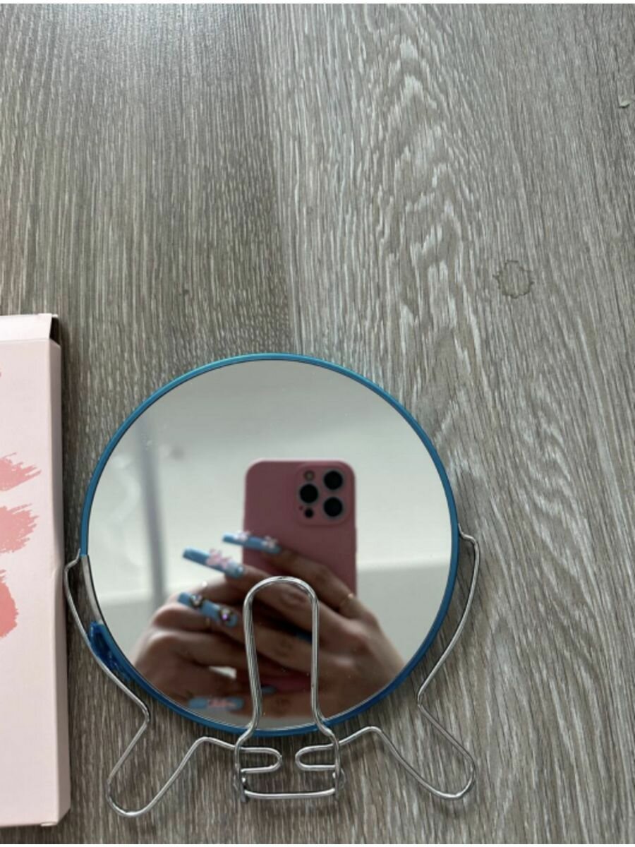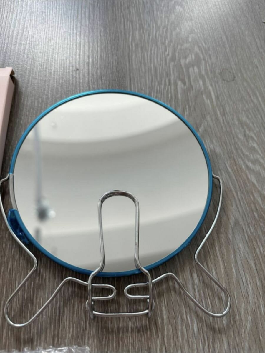 Зеркало настольное круглое железное двустороннее разного увеличения 16 см