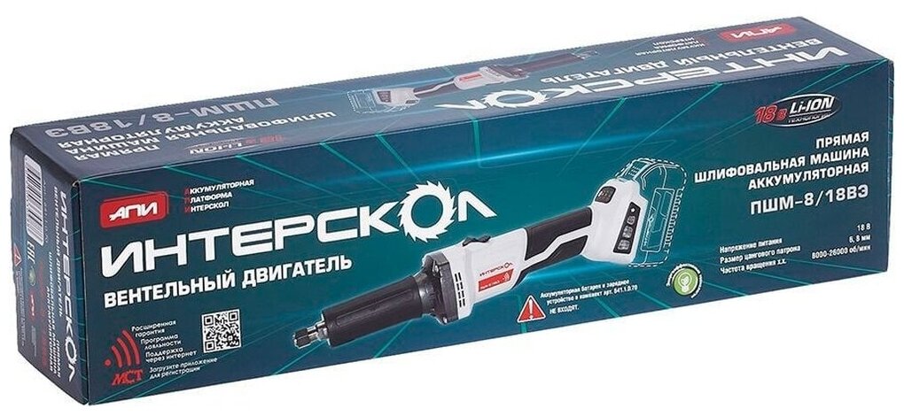 Бесщеточная аккумуляторная прямая шлифмашина Интерскол ПШМ-8/18ВЭ Li-ion АПИ (картон, без аккум., ЗУ) 641.1.0.70