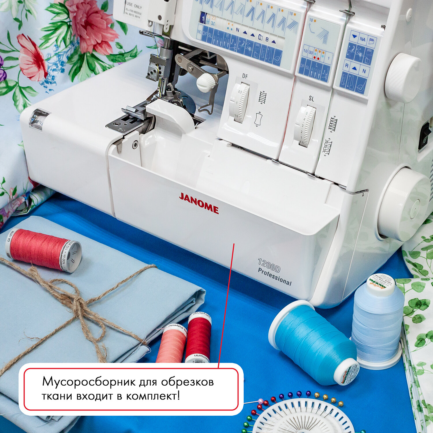 5-ти (4, 3, 2-x) - ниточный оверлок + 3-х игольная 5-ти ниточная плоскошовная машина (коверлок) Janome 1200D Professional
