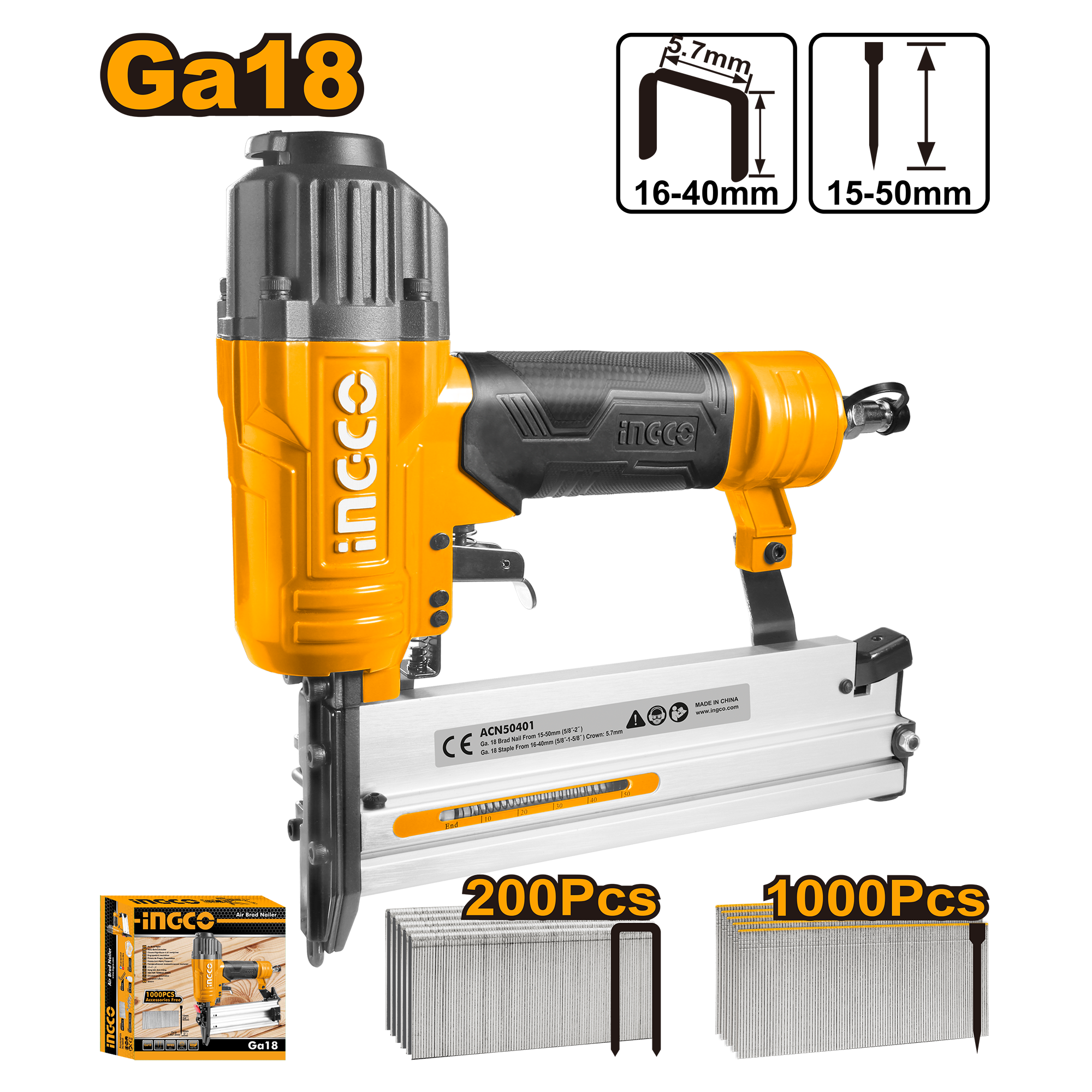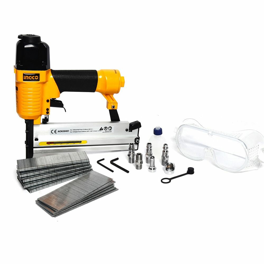 Пневматический степлер для скоб и гвоздей INGCO ACN50401 INDUSTRIAL Ga18 15-50 мм